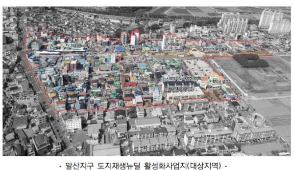 함안군 가야읍 말산리에 도시 쇠퇴의 가속화 및 경제적으로 쇠퇴가 진행되고 있는 말산리 지역을 대상으로 주거환경개선, 골목상권 강화, 공동체 활성화, 기초생활 인프라 구축 등을 통한 근린재생형 도시재생을 실현하는 사업을 말합니다
