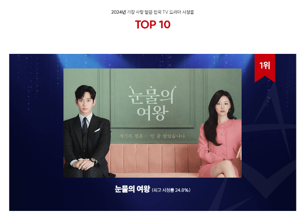 2024 가장 사랑을 많이 받았던 한국 TV 드라마 시청률 TOP10