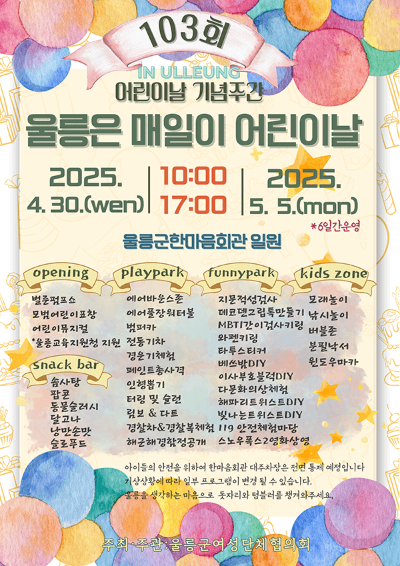 제103회 어린이날 기념주간 울릉은 매일이 어린이날