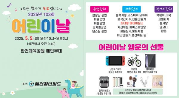 전통과 현대가 어우러진 다양한 프로그램으로 아이들의 상상력과 창의력을 자극하는 어린이날 행사에 참여해 즐거운 하루를 보내보시길 바랍니다
