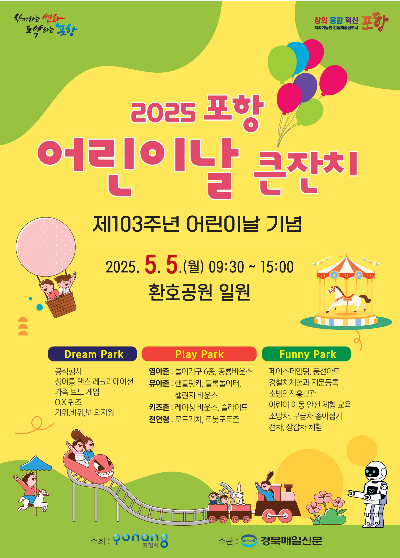경상북도에서는 5월 어린이날을 맞아 지역별로 다채로운 프로그램이 준비되어 있습니다. 행사에 참가해 아이들이 가족과 함께 특별한 추억을 만들 수 있도록 즐겨보세요~