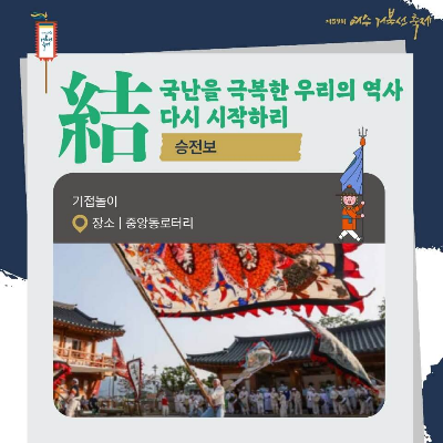 ▶️내용: 둑제-출정식-전투-승전 장면 등 가장물을 활용한 퍼포먼스형 퍼레이드
